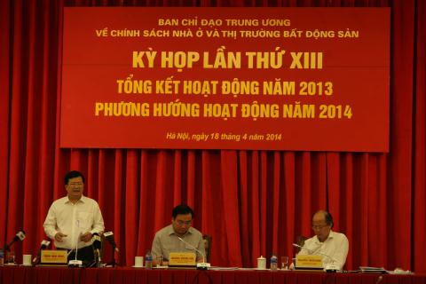 Bộ trưởng Bộ Xây dựng Trịnh Đình Dũng cho biết tại buổi họp Ban chỉ đạo trung ương về chính sách nhà ở và thị trường bất động sản liên quan đến nội dung kiến nghị của Bộ Xây dựng trình lên Thủ tướng Chính phủ về việc yêu cầu địa phương không cấp phép xây dựng các dự án phát triển nhà ở thương mại, các dự án khu đô thị mới trong năm 2014.